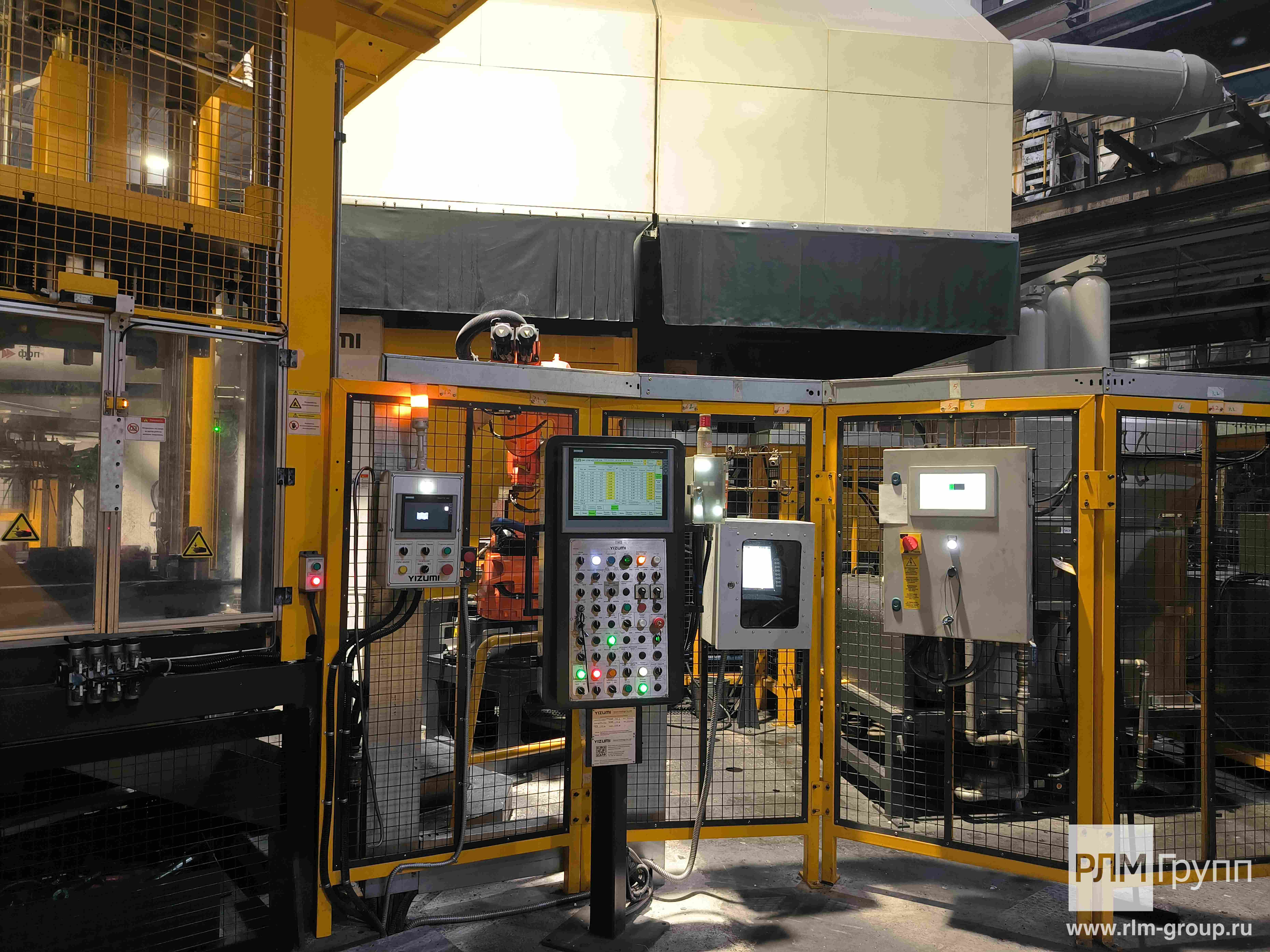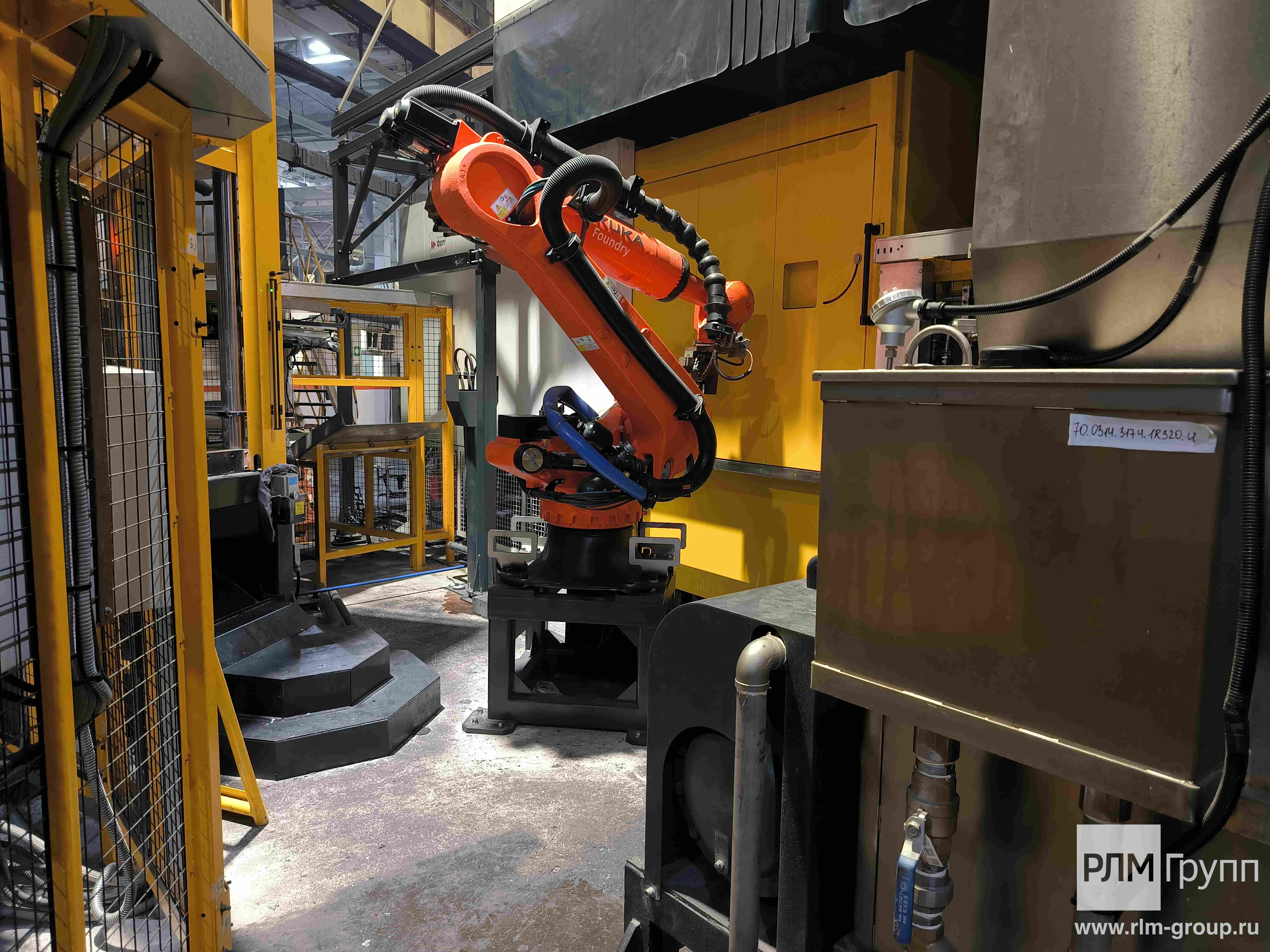 - Полностью автоматический процесс производства отливок осуществляется за счет использования двух промышленных манипуляторов и одного индустриального робота Kuka, а также интеграции всех периферийных устройств в единую систему управления литейным комплексом.